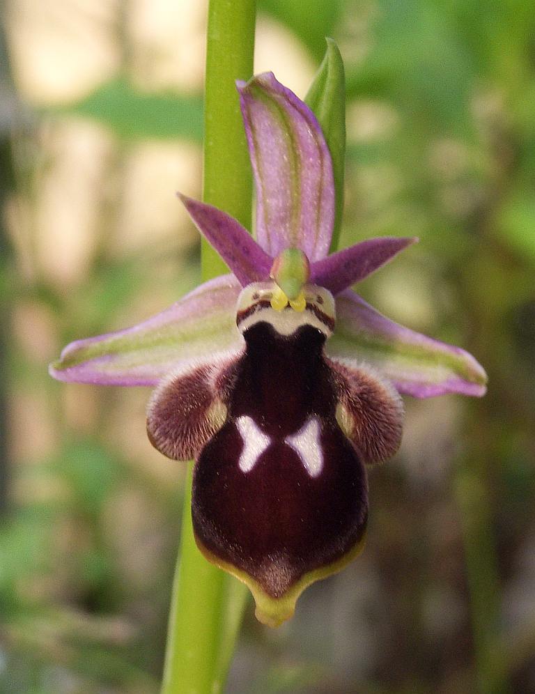 Ophrys iricolor - leider etwas unscharf, aber dafür kommt das Blau der Lippe schön raus, ...