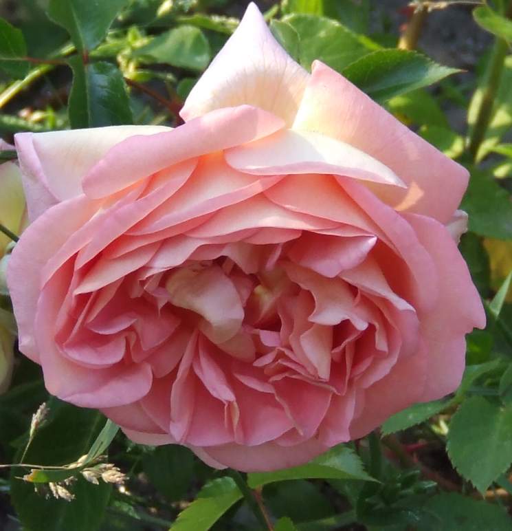 ) und die Rose ruckzuck ausgegraben. Einige andere Gewächse, so diverse Zwerg-Iris und die abgestochene Wurzel von einer Pfingstrose wurden uns auch noch in die Hand gedrückt. Ich hätte der guten Frau am liebsten den ganzen Garten umgegraben und gerodet, hatte aber die Befürchtung, hier eine Situation auszunutzen.Die Rose hat es uns gedankt. Sie ist ein inzwischen über 2 m hoher Strauch. Sie blüht zwar nur einmal, dafür aber mit exquisiten Blüten, die auch noch herrlich duften.