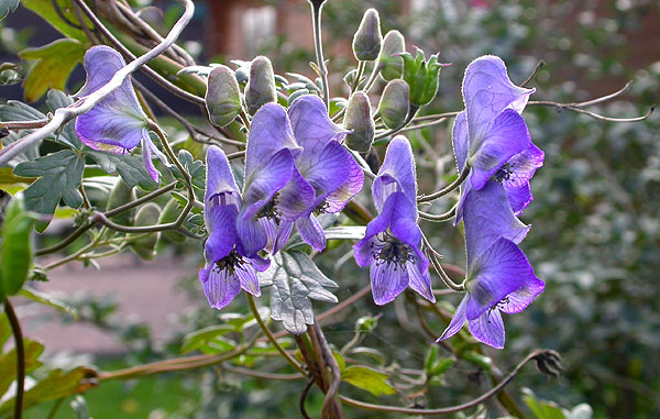 Weil sein Kletterbaum im Winter fast erforen ist und runtergeschnitten wurde, bekam das Aconitum nur einen Tomatenstab zum Klettern. Paßte auch.