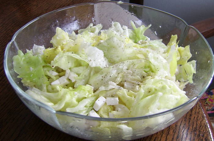 Und dazu einen Eissalat mit Mozarella.