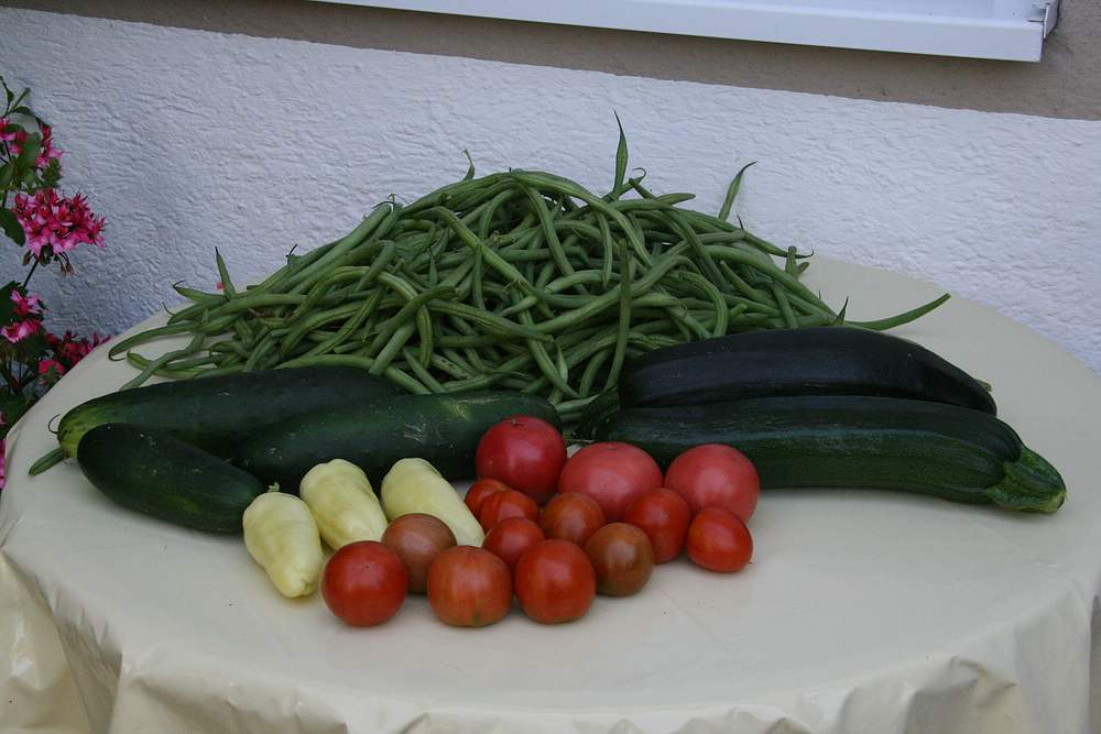 Heute auch bei mir eine Riesenernte, eine 6Liter Schüssel voll mit Salatgurken, eine 4 Liter Schüssel voll Einmachgurken, vier 3 Liter Schüssel voll Tomaten, eine dicke handvoll Spaghettibohnen und 8 Zucchini, darunter zwei dicke