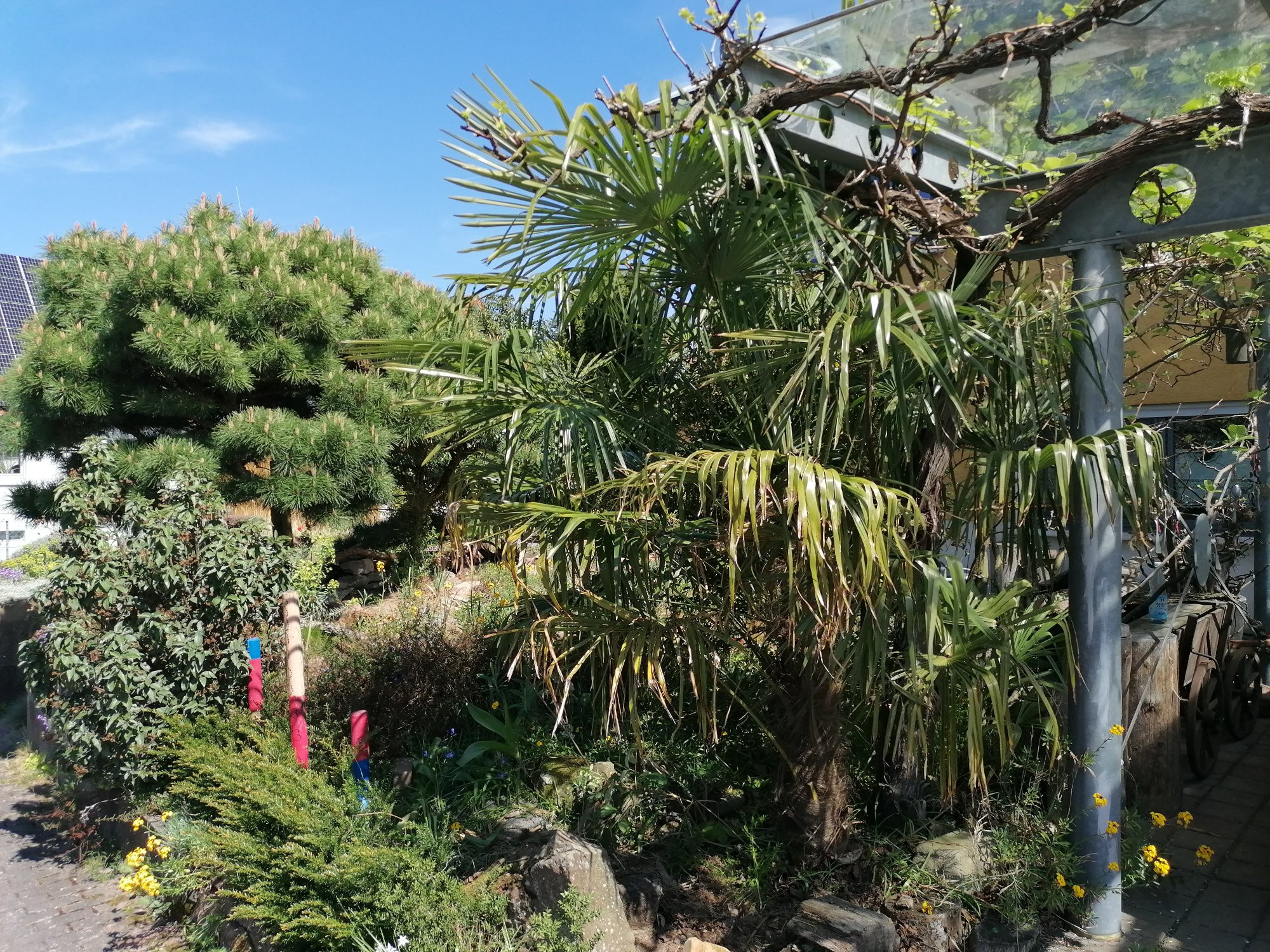 Die Hanfpalme im Gebüsch.
