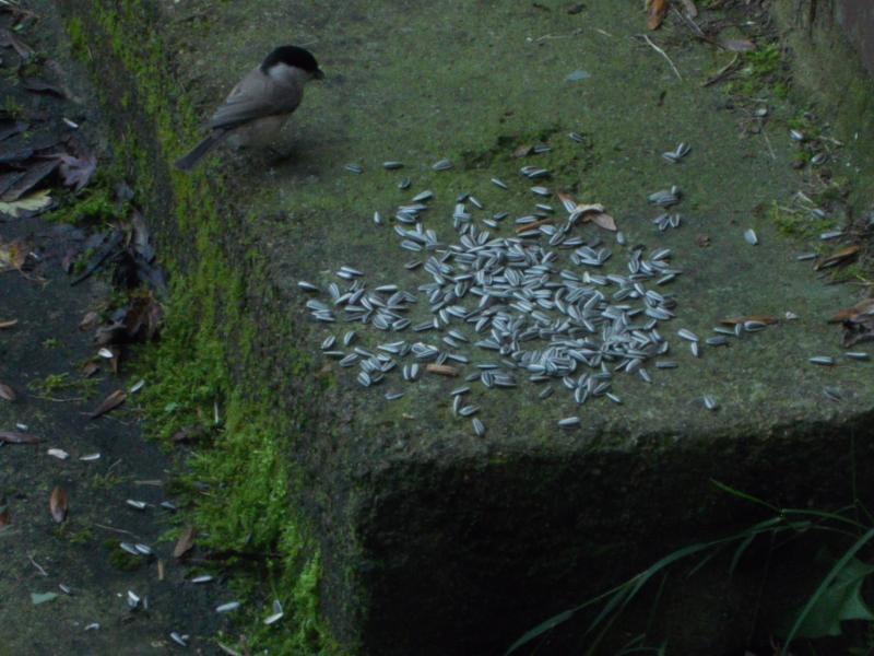 Ich habe gelesen, dass Sumpfmeisen sehr standorttreu sind, paarweise auftreten und sich nicht mit Meisentrupps mischen. Das alles trifft auf diese zu. Futtehäuschen gibt's da nicht, sie sind schon den ganzen Sommer da.