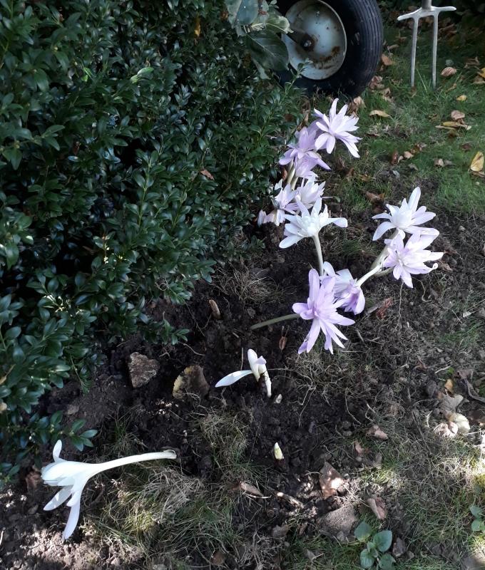 Ich habe kürzlich bereits blühende colchicum autumnale 'Album' aus einer hoffnunglos überwucherten Situation geholt. Die Zwiebeln hatten praktisch (noch) keine Wurzeln.