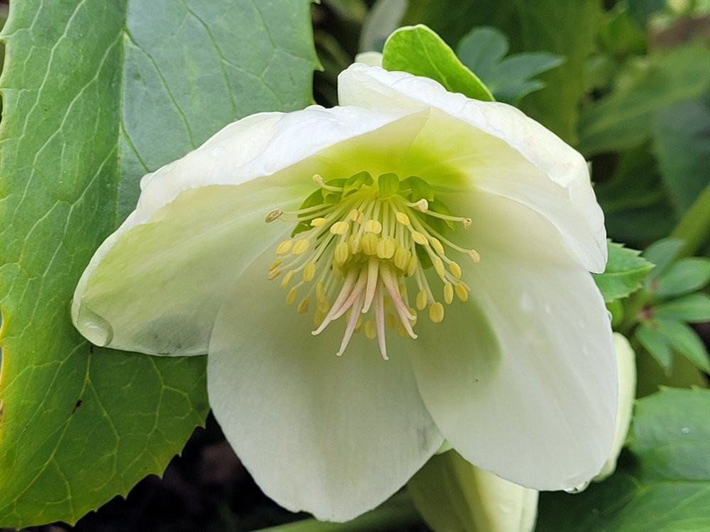 Die Lenzrosen blühen auch so, bei der üppigen Belaubung ist das aber auch kein Wunder.