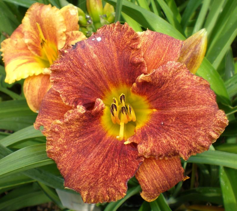Bei mir eine der wandelbarsten überhaupt: Auf dem Bild zwei gleichzeitig blühende an der gleichen PflanzeSpacecoast Freaky Tiki ;)Blüht sie das erste Mal bei dir? Denn so habe ich sie hier äußerst selten erlebt. Klein - ja, aber ein regelrechtes Feuerwerk, reichblütig und in leuchtender Farbe. Allerdings oft mit Fehlern in den Blütenblättern.'Spacecoast Freaky Teaky'in Wirklichkeit eher klein und unscheinbar.