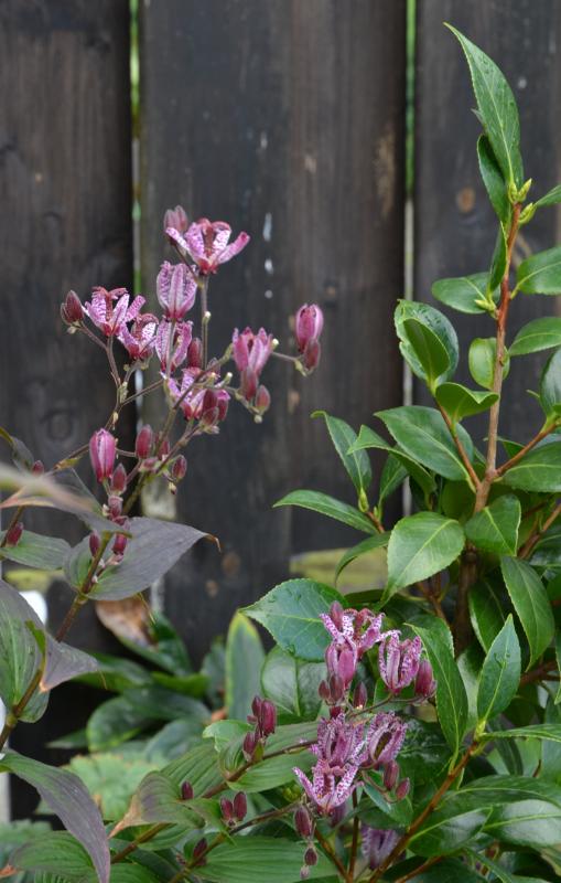 O.k., dann liefere ich mal eine Tricyrtis mit Kamelie.