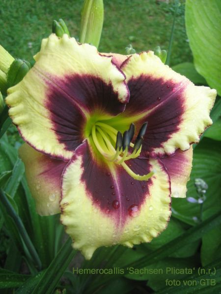 Eine wirklich in jeder Beziehung supertolle Taglilie ist ein Sämling von Ronald Albert, der unregistriert unter dem Namen 'Sachsen Plicata' läuft.