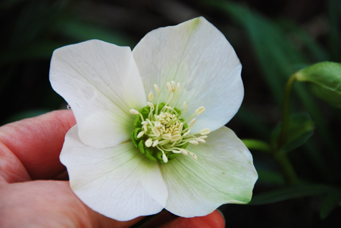 Ein Sämling aus meinem Garten. Den strengen Augen der hier versammelten Hellborus-Freunde dürfte er nicht standhalten. Aber ich finde ihn ganz lustig.