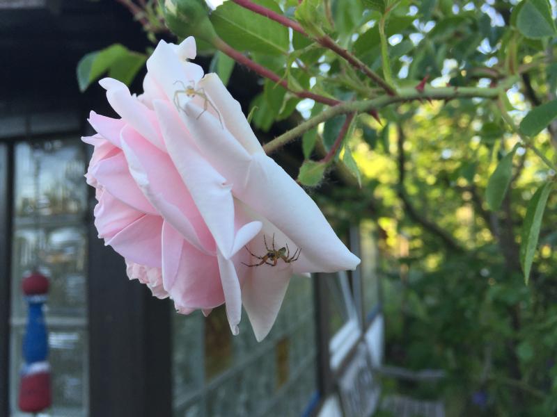 edit: leider sieht man die kleine hübsch bunte spinne an der rosenblüte nicht sonderlich gut... :-\