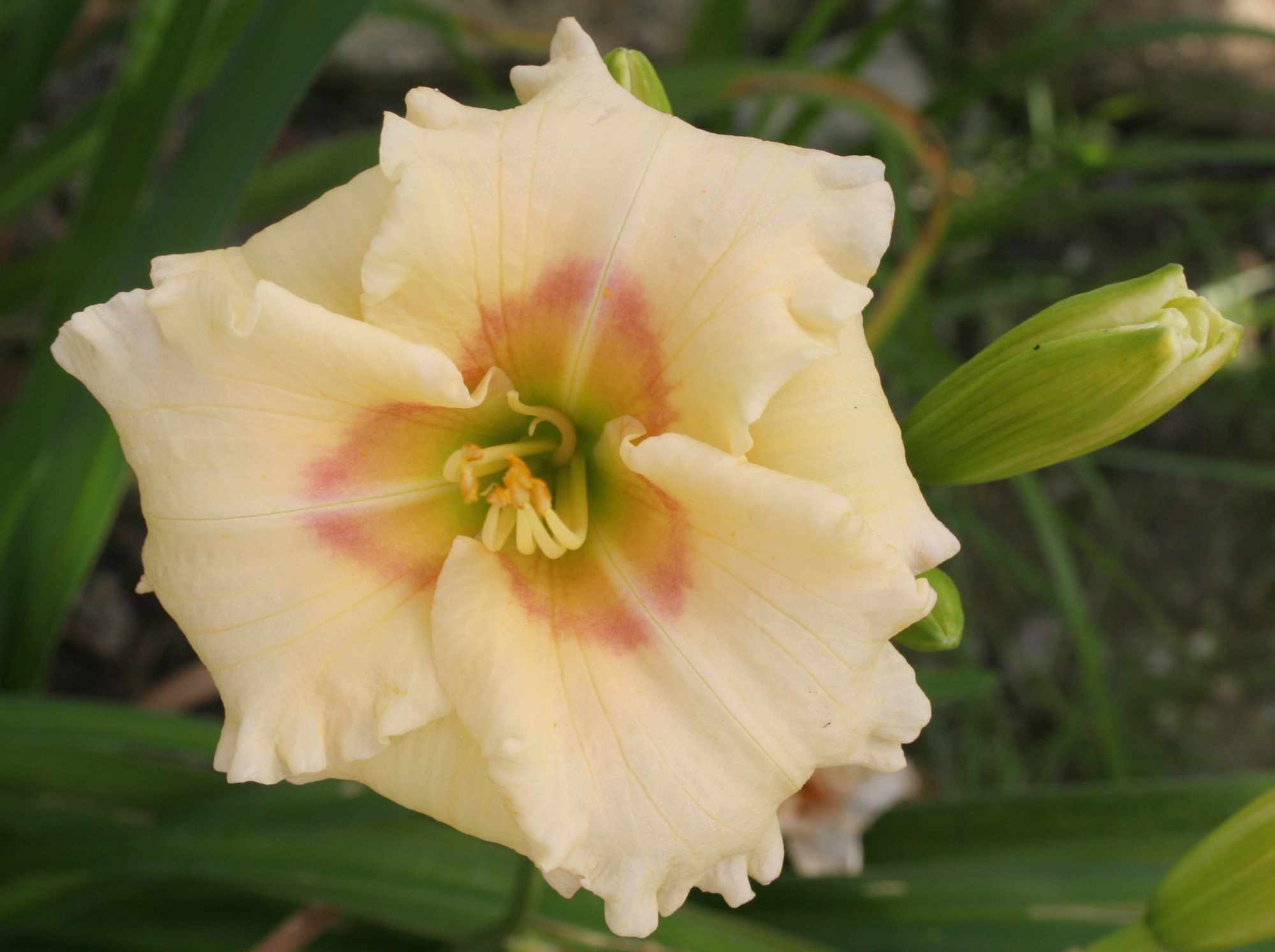 Der gefällt mir! Und Pollen hat er auch schon auf seiner Narbe. Hast Du den aufgetragen? Wenn ja, mit was hast Du gekreuzt?Heute neu und eindeutig zur ersten Fraktion gehörig (und, im Gegensatz zum bereits gezeigten Geschwistersämling fliederfarben):