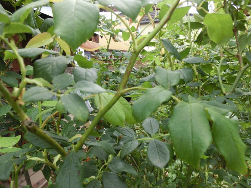Wenn die Knospen gelb sind und die Rose wenig bestachelt ist und erst in der Mitte noch gelblich aufgeht,könnte es Tranquillity sein.