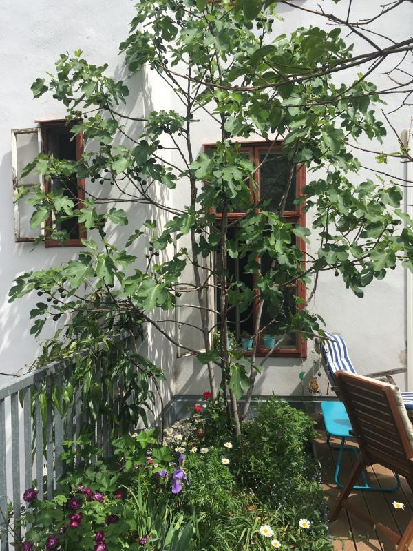 Ja, das stimmt. Aber ich kann aus dem zweiten Stock pflücken, über unserem Küchenfenster ist ein Stiegenhausfenster.