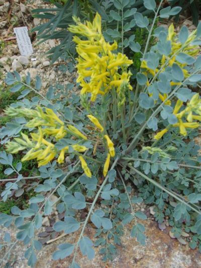 Mein Corydalis nobilis ist eine große Pflanze, auf dem Foto ist nur eine von zahlreichen Blüten. Ich habe die Pflanze vor 2 oder drei Jahren mal ausgebuddelt, weil ich sie teilen wollte, hab dabei festgestellt, dass alles nur eine einzige Wurzel hat