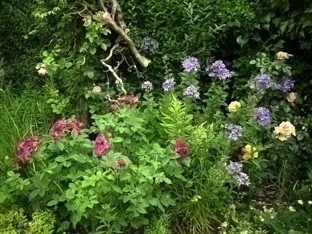 und hier noch ein ensemblebild:purple lodge im verblühen mit barock zur seite, dahinter jasmina, dazu campanula und solidaster.