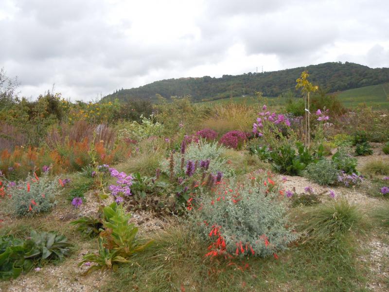 Zauschneria und Penstemon scheint das z.B. gut zu gefallen. Hier sieht man im Hintergrund ein (1!) Gehölz (Asimina).
