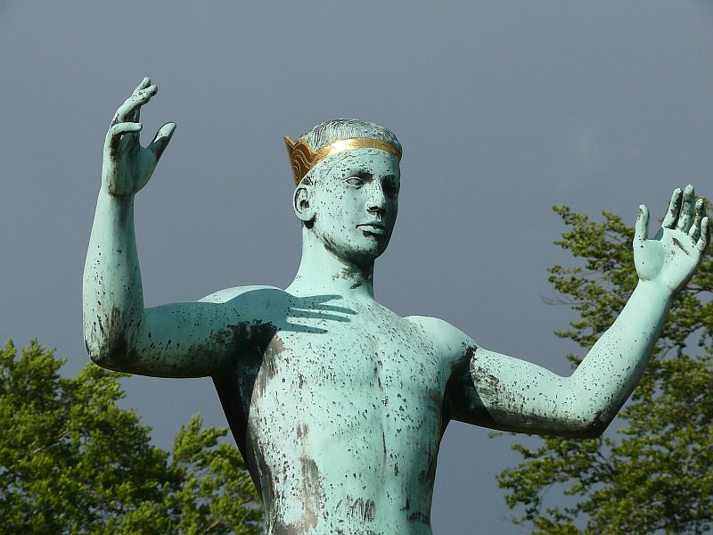 Schloss Eckberg - der "Sonnenanbeter", eine Bronzeplastik von Sascha Schneider.