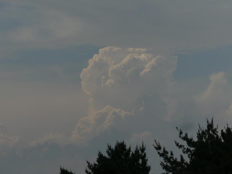Ganz im Westen sind die Gewitter durch, und wir bekamen den Klassiker: Langsam ziehende Front; stundenlanges Gerumpel und Gedröhne wie von einem Truppenübungsplatz, kurz vor uns bekam die Front eine Lücke, links und rechts von uns ging die Welt unter und wir hatten eine Stunde lang leichten Landregen - 2 mm >:(.