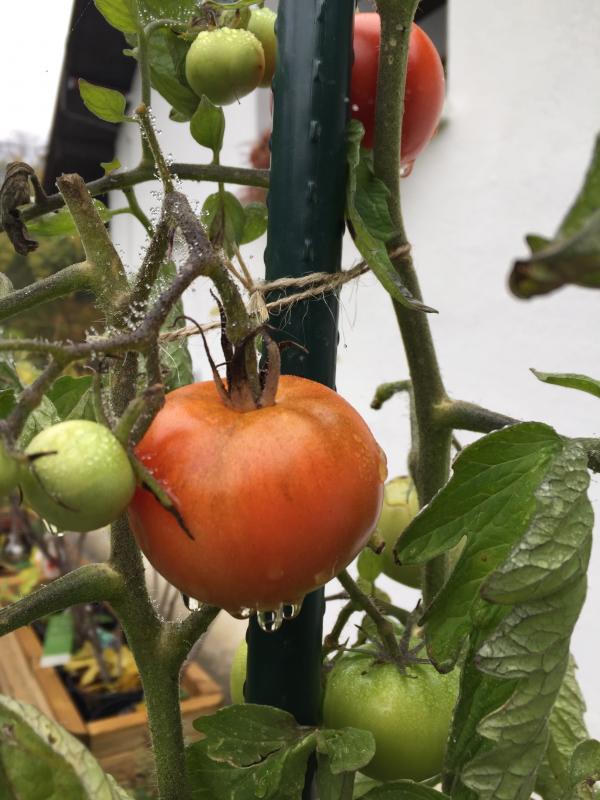 Seit Jahren habe ich die Tomaten ausschließlich in (großen) Töpfen direkt an der Hauswand (Südost und Südwest) stehen, anders ginge es, zumindest ohne GWH nicht. So spät die Ernte heuer in die Gänge kam, so gut war sie schlussendlich. Vorletztes Wochenende habe ich komplett abgeräumt und noch viele Kilos geerntet. Ein Großteil wurde dick konzentrierte Soße, die Roma werde ich noch trocknen und zum Frischessen sind auch noch genug da. Es scheint, dass beinahe alle Früchte nachreifen.