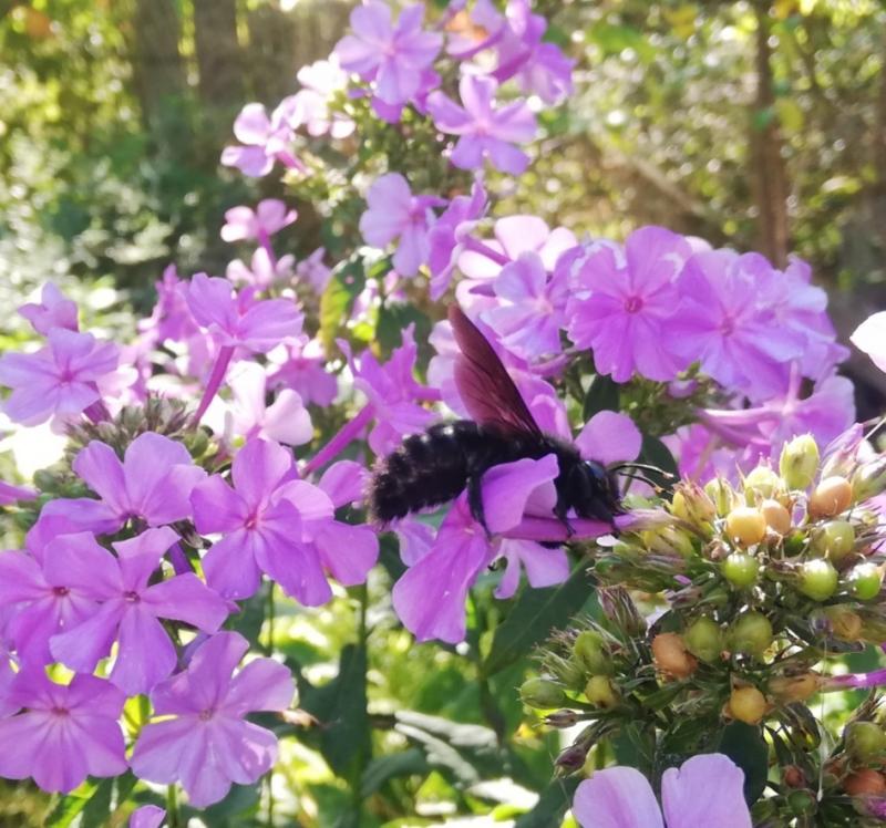 So richtig viele Wildbienen fliegen aktuell nicht mehr bei mir, obwohl der Tisch noch reichlich gedeckt ist. Ich hab die Tage noch eine Wollbiene gesehen, irgendwelche Furchenbienen, darunter auch noch Männchen :o und Blattschneiderbienen (Hummeln natürlich auch noch). Heute gab's Besuch von den Holzbienen, von denen sich mehrere an der Bartblume getummelt haben