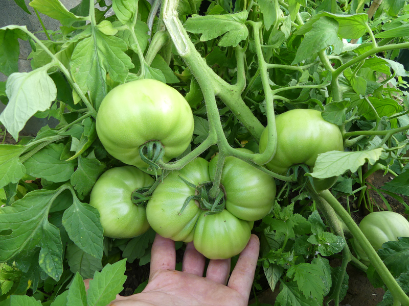 Fleischtomaten, Flaschenförmigen und Pflaumenförmigen haben noch nichts.