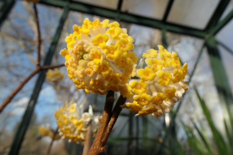 Die ausgepflanzte Edgeworthia blüht noch lange nicht, aber die im Topf erfüllt das Gewächshaus mit Duft!