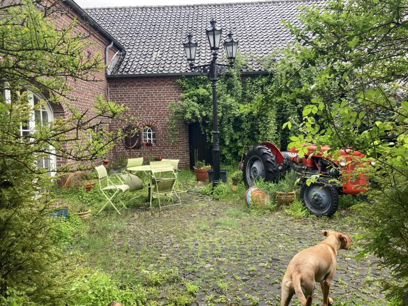 Anbei mal ein Eindruck von unserem Innenhof. Dieses Jahr hatte ich so gar keinen Bock, hier etwas zu tun, das schöne Kopfsteinpflaster ist kaum noch zu sehen, aber der ansässige Pflasterer hat seit 2 Jahren keine Zeit, das Problem zu lösen und nach zig Jahren Arbeit (rausrufen, mit Fräse zu bearbeiten, abflämmen, was in Dürrejahren nicht möglich war) habe ich seit letztem Herbst nichts mehr gemacht. Hier das Resultat.....