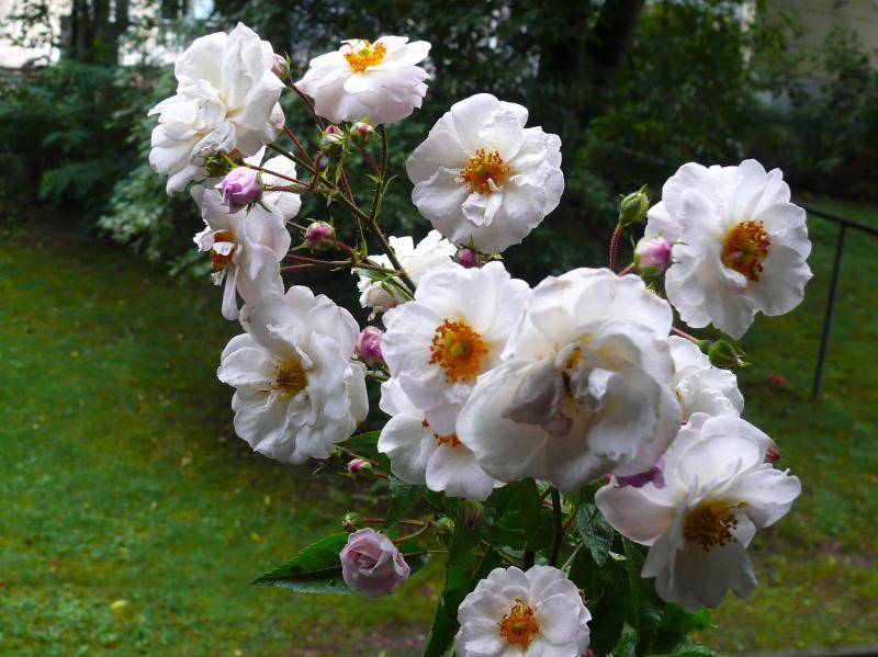 In den letzten Wochen hat es ständig geregnet, deshalb sind viele Rosenblüten nicht mehr perfekt und auch das Laub ist oft nicht mehr so gesund wie zum Beginn der Blütezeit. Aber ein bisschen was gibt es doch zu zeigen.