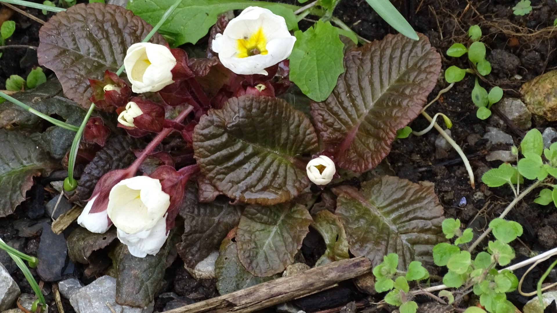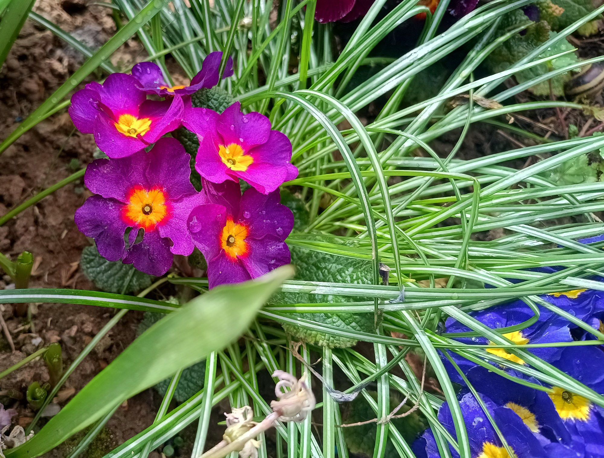 Im Beetteil am Haus erfreuen mich u.a. aktuell Primeln. Später stehen sie geschützt vor der Sommersonne unter Stauden etc..