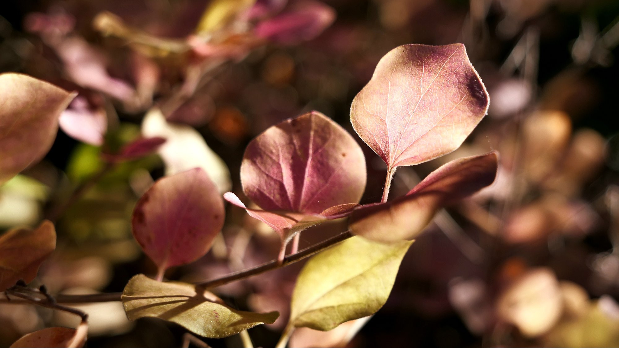 Auch die Gaultheria ist so ein Mitbringsel für wenig Geld aus dem Baumarkt, welche letztes Jahr den Weihnachtsbäumen weichen musste. In einem ziemlich keinen Topf hat sie sich mit ein paar Schluck Flüssigdünger wieder prächtig gemacht, reichlich geblüht und viele Früchte angesetzt. Rechts sieht man das oben erwähnte Cyclamen persicum, bei dem es mir endlich gelungen ist, es einmal durchzukultivieren. Das Laub wollte den Sommer über gar nicht einziehen, so dass einige Blätter etwas verschrumpelt aussehen, aber sie tun sicher nach wie vor ihren Job. Den Abschluss macht ein Foto von Cercis canadensis 'Eternal Flame', diesmal aber im Abendlicht, das so schön das Laub zum Leuchten bringt. Die vor ein paar Wochen noch hellgrünen Blätter färben sich nun nach und nach wieder leuchtend rot, passend zum Sortennamen. So lasse ich mir den Herbst gefallen! :D