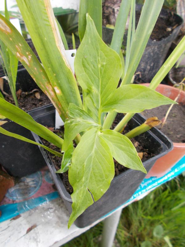 Mich erinnert das an meine kleinen Arisaema flavumsämlinge. Also auch was aus der Aronstabfamilie.