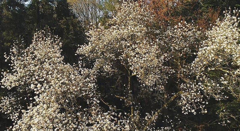 Hier Magnolia kobus, etwa 65 Jahre alt, etwa 18 x 18m Ausdehnung/Höhe.