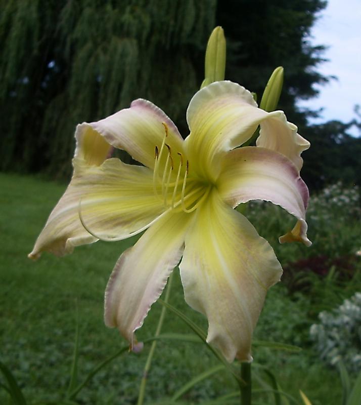 Sieht nach einem "Platzhirsch" aus - so raumgreifend :)Gefällt mir sehr, sehr gut!'Purple Corndance' x 'Heavenly Angel Ice'.War mir bisher gar nicht so aufgefallen.Heute ist sie klasse.