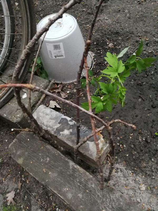 Vorgestern Abend sah ich beim Heimkommen, dass jemand ein Fahrrad mit dem Hinterreifen auf der Pflanzfläche und ausgerechnet mitten auf das Tränende Herz abgestellt hatte. :'(