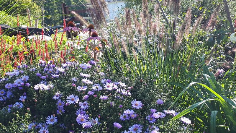 Die Schönaster (Mitte) bleibt einfach tatsächlich immer schön: lange blühend, abblühend und auch verblüht.
