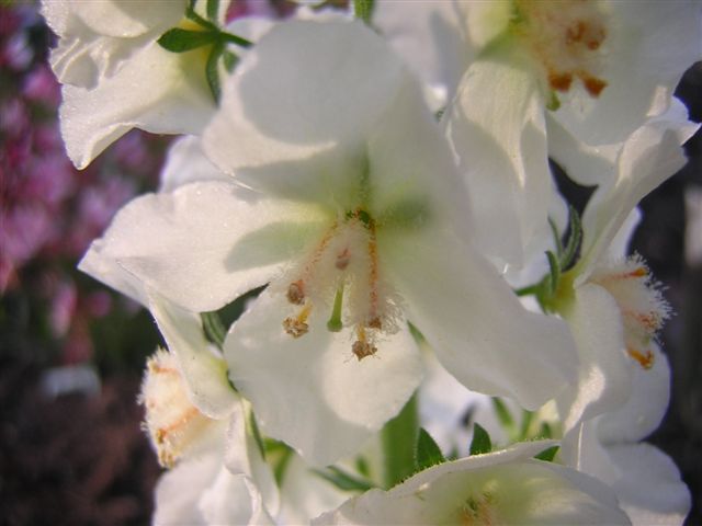 V.chaixii hat lila StaubfädenNein, leider nicht. Ich habe Verbascum phoenicum und V.chaixii ausgesäät, und beide blühen weiß. Sie haben im ersten Jahr schon geblüht, bis in den November hinein.