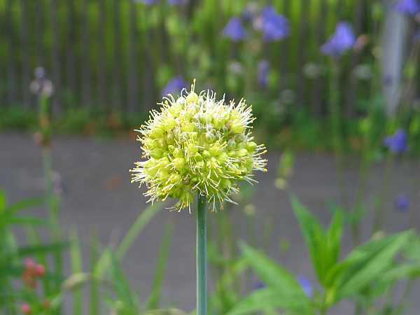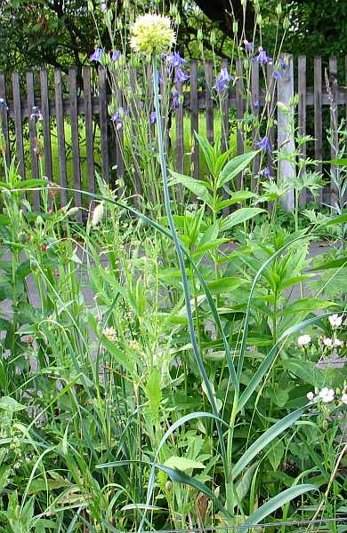 und steht unvergleichlich viel besserund hat zur Bluetezeit noch gruenes Laub und wenig davon..Die Kugeln machen meiner Ansicht nach zu wenig her. Porree blüht attraktiver.