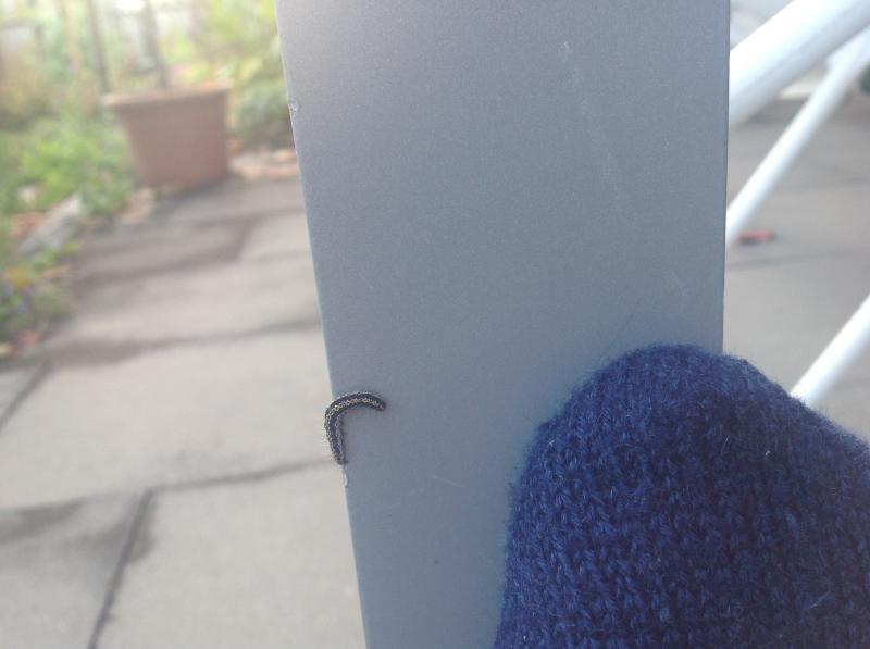 Ich habe diese Raupe gestern an einem Blumentopf entdeckt; zu welchem Schmetterling gehört sie?