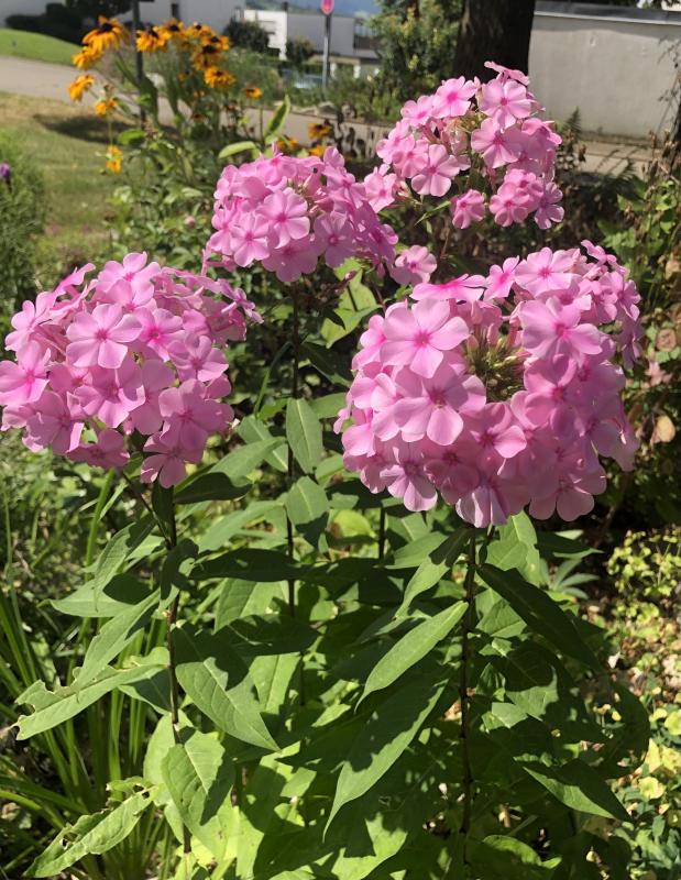 Einer meiner unverwüstlichsten Phloxe ist ´Fujiyama´, hier hält er sich seit Jahrem unmittelbar an eine Buchshecke gepflanzt, zusammen der später blühenden ´Betty Marguerite´ (links) und einem ebenso zähen Sämling (rechts).