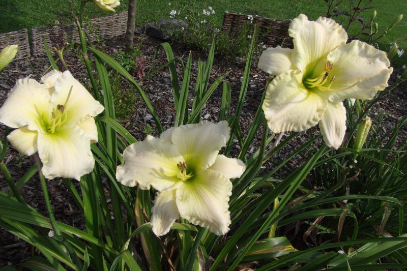 Zuckersüß, die beiden! ;)Für "Sachsen Bicolor" habe ich die Daten von Ronald Albert:Diploid, einziehend, Blütendurchmesser 12 cm, 60 cm HöheUnd es ist ein benamter Sämling aus dem Jahr 2001."lavendelpink und creme bicolor"