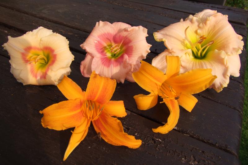 Rare Love gefällt mir auch sehr,sehr :DSchlichte Eleganz eben.Ich drön euch trotzdem jetzt mit Farben zu.Hier Vergleichsfotos von der vermeintlichen Burning Daylight.Ich habe zwei Blüten gefunden.Als Vergleich dazu Blüten von Siloam Ethel Smith,Janice Brown,Taos.