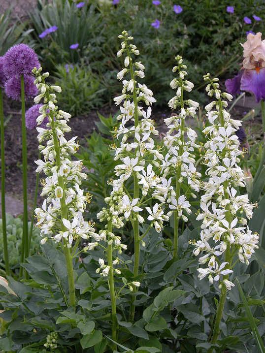 der weisse Diptam steht im Moment in Blüte, dahinter noch Geranium Orion.