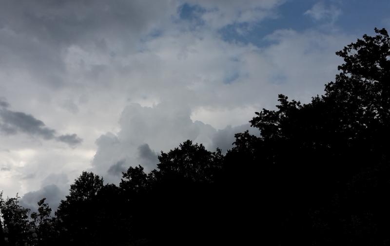 Nachdem der Regen aufgehört hatte, war es erst einmal unerträglich schwül, die Luft stand, kein Lüftchen regte sich, und die Sonne schien auf die klatschnasse Landschaft und half dem Wasser fleißig beim verdunsten. Man konnte den Wolken beim Quellen zuschauen.