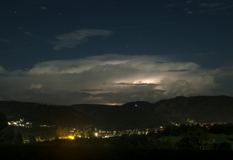 gegen Mitternacht ließ dann die Aktuvität nach, ein letzter Blitz, als es über Benneckenstein/SAnh zog.