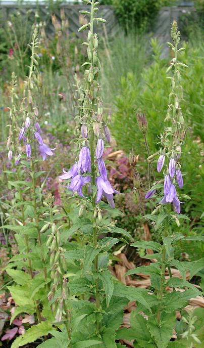 C.rapunculus?BTW: Habe gerade diese Glockenblume am Gehölzrand blühen. Sie wird mit schlanken Infloreszenzen ca. 1,50 m hoch und bildet keine Ausläufer (weswegen sie trotz ähnlichem Aussehens wohl keine Campanula rapunculoides ist). Wer weiß, wie dieses Ding heißt?