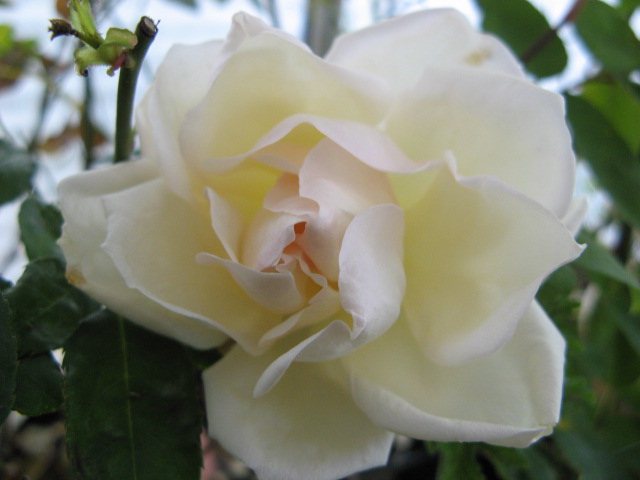 Ich muß noch mal eine Lanze für Jean Ducher brechen. ;)Sie ist schon ins gewächshaus eingeräumt und will sich offenbar zu Tode blühen. ::)Eine sehr dankbare Rose,jetzt etwas blässlich im Farbton.