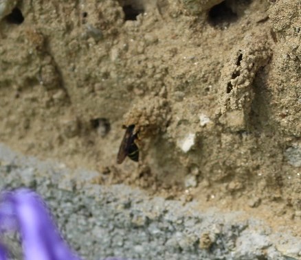 Bei mir kommt übrigens auch die Schornsteinwespe an diese Lehmmauern. Diese bevorzugt ebenfalls nur ganz kurze Löcher, mit etwa 5mm Durchmesser. Bei der Pelzbiene wird 10mm gerne angenommen.