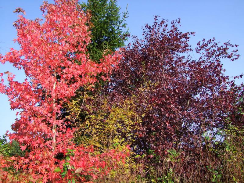 Der Liquidambar kommt grad in Fahrt, allerdings nicht so schön, wie bei Nova Liz und mein Acer palmatum 'Atropurpureum' hat leider bereits viel Laub abgeworfen.