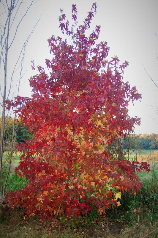 Hier leuchtet besonders der Amberbaum (Liquidambar styraciflua)