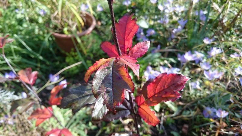 Von dem in England erworbenen Malus transitoria 'Roundabarrow Ruby' könnte mal zum Herbstspektakel beitragen.